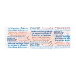- Bandages feature a water-resistant plastic backing and an absorbent, non-adherent, continuous pad